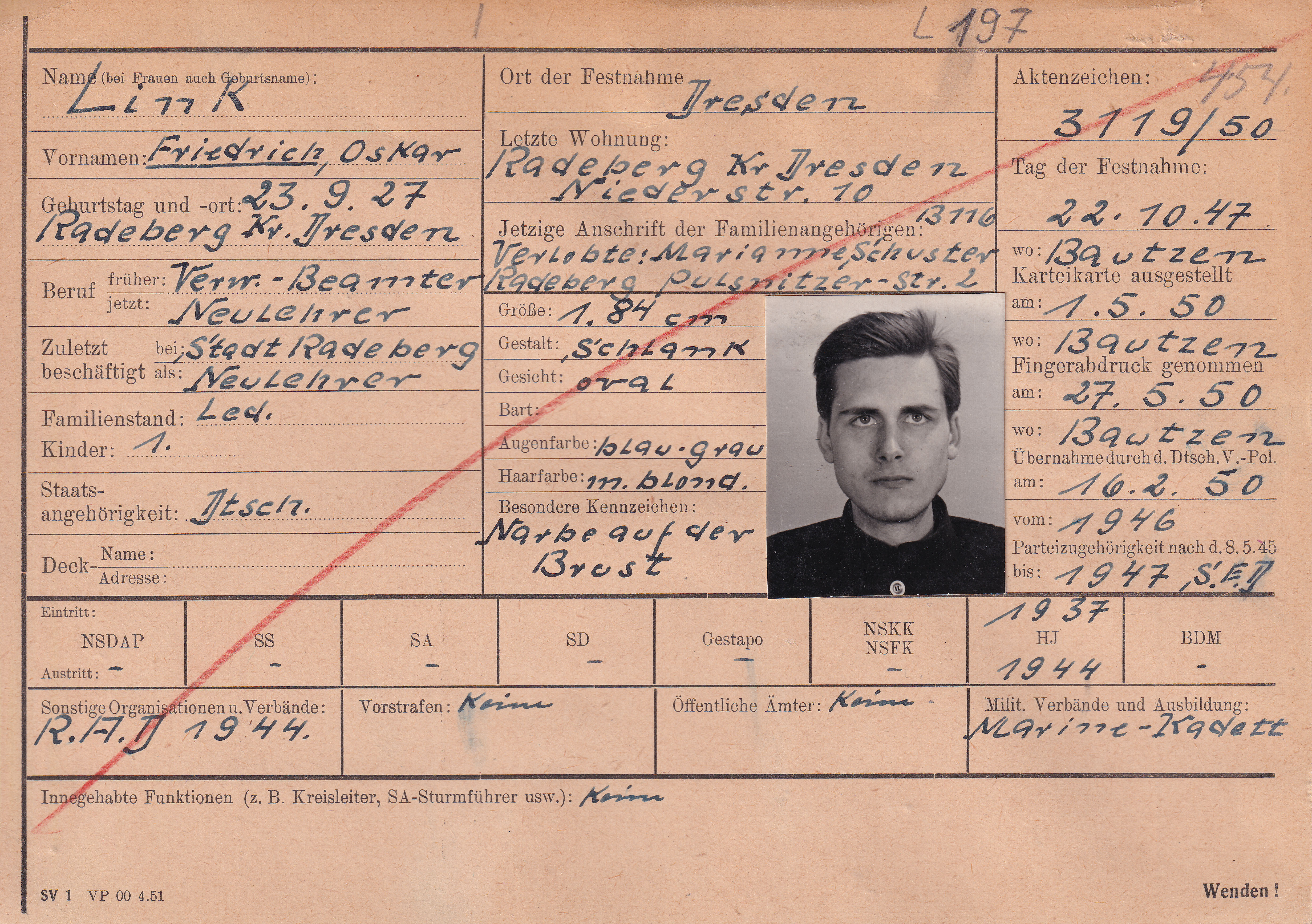 Am 22. Oktober 1947 durchsuchten sowjetische Sicherheitsorgane Links Wohnung und fanden ein von ihm verfasstes Flugblatt. Daraufhin wurde er in die sowjetische Untersuchungshaftanstalt am Münchner Platz überführt. Dort fand am 2. Dezember 1947 vor dem SMT des Landes Sachsen der Prozess gegen ihn und die anderen Gruppenmitglieder, Werner Baumann, Günther Blaurock, Käthe Scholz, Thea Strauß, Wolfgang Wernicke und Siegfried Wünsche, statt. Auf Grundlage der Artikel 58-4 (Unterstützung der internationalen Bourgeoisie) und Artikel 58-10, Abschnitt 2 (antisowjetische Agitation) verurteilte das Gericht alle Angeklagten zu 25 Jahren Haft in einem „Besserungsarbeitslager“.
