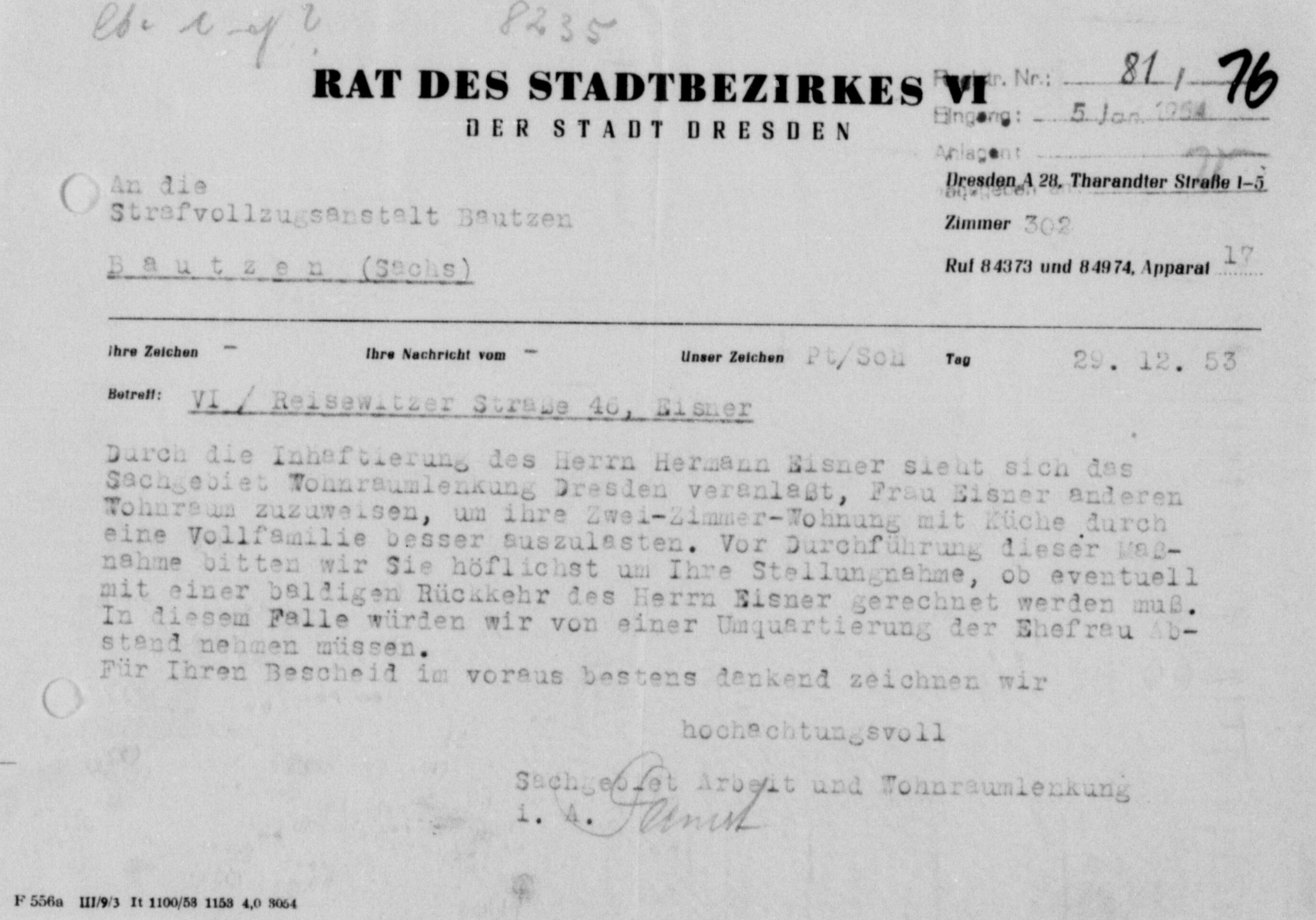 Hinweis: Für eine weitergehende Nutzung, zum Beispiel für eine Veröffentlichung, bedarf es der Zustimmung der Dokumentationsstelle Dresden. Bitte kontaktieren Sie uns dazu.Quellen