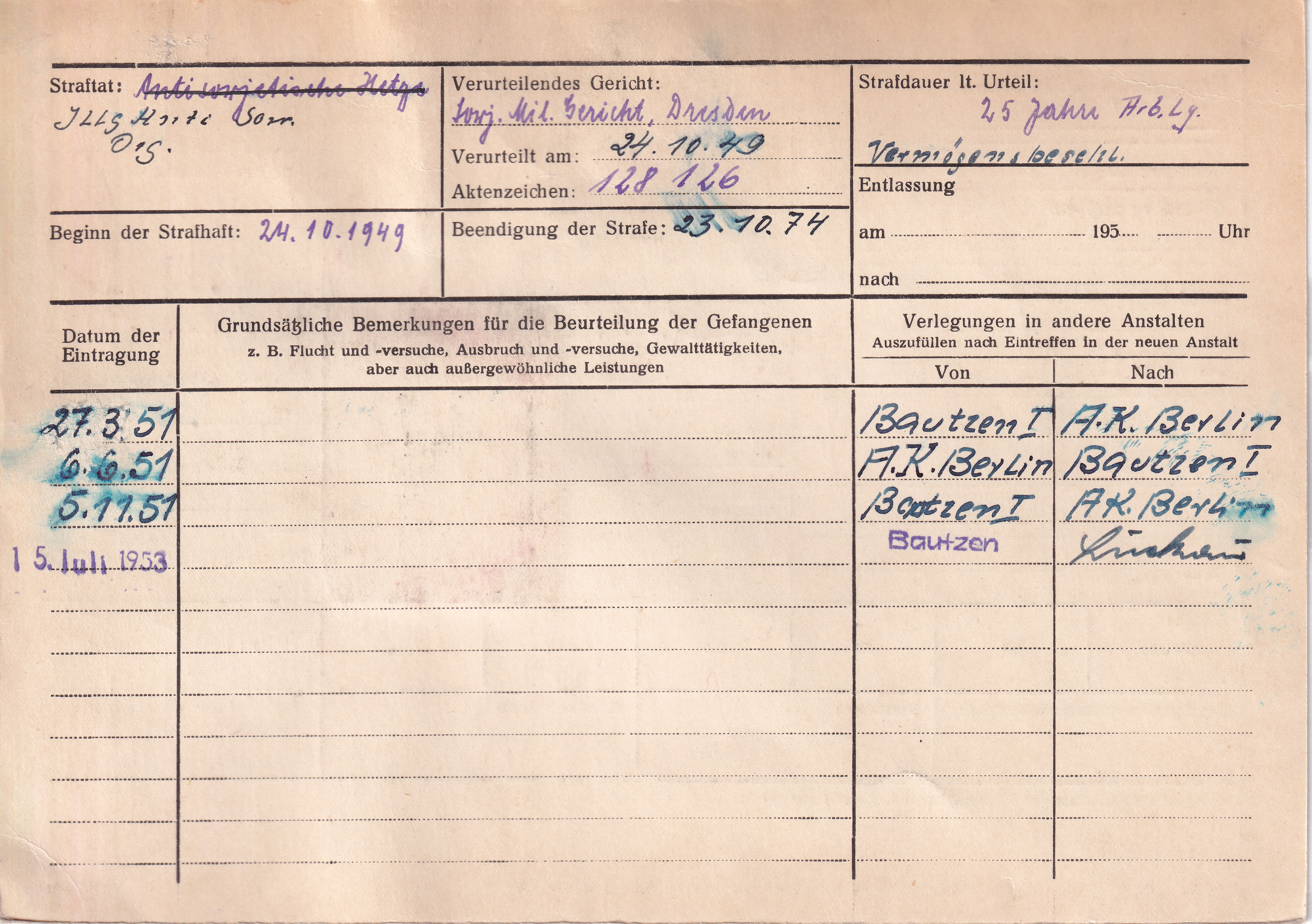 In diesem Bereich finden Sie die Namen all derjenigen Deutschen, die zwischen dem Ende des Zweiten Weltkrieges und 1953 in Dresden oder Radebeul vom Militärtribunal der Sowjetischen Militäradministration in Sachsen, vom Militärtribunal der 1. Garde-Panzer/Mechanisierten Armee (Feldpostnummer 08640) oder vom Militärtribunal der Gruppe der Sowjetischen Besatzungstruppen in Deutschland (Feldpostnummer 48240) verurteilt wurden.
