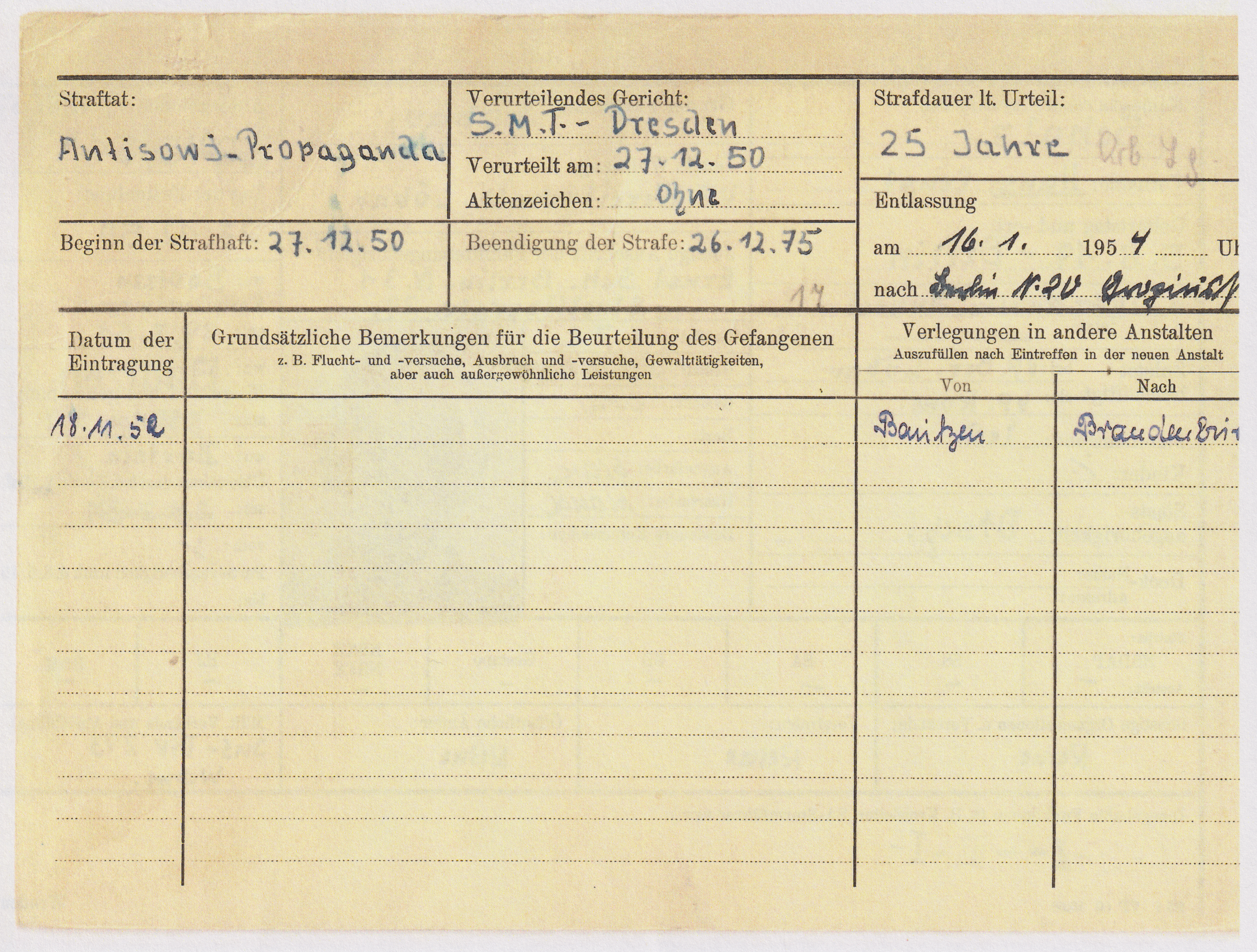 • Haftorte: Bautzen (Speziallager)