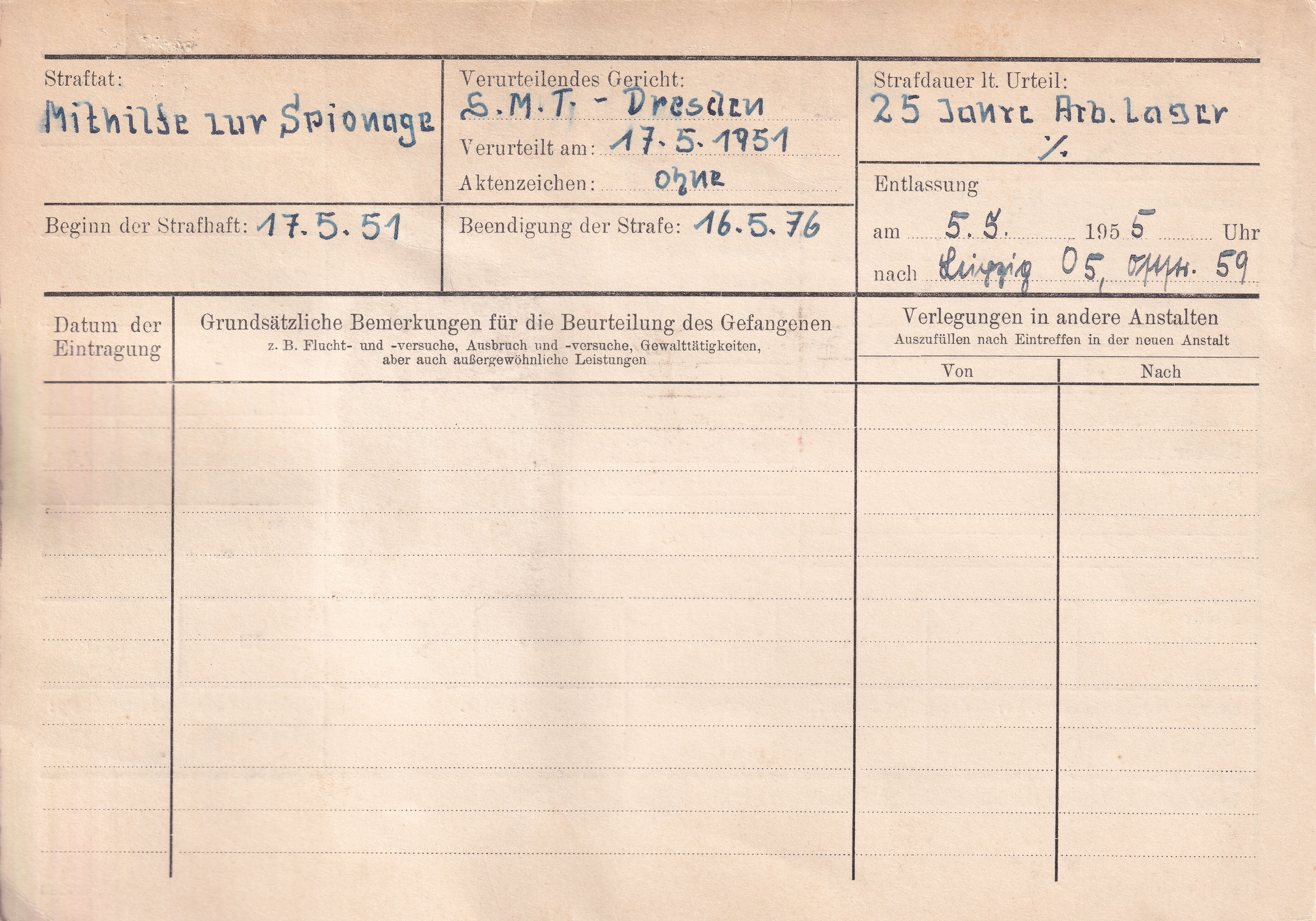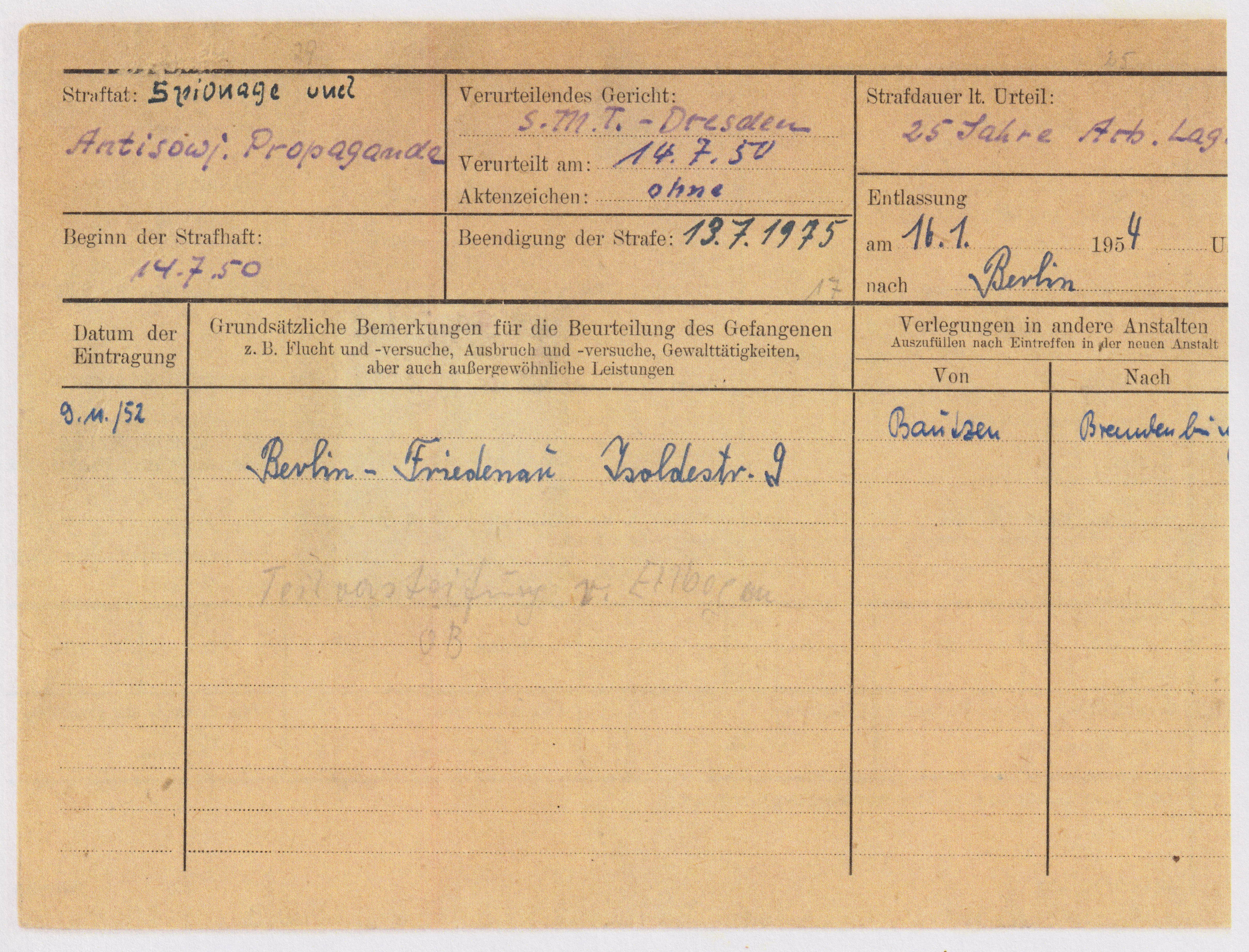 • Haftorte: Dresden (NKWD/MWD)
