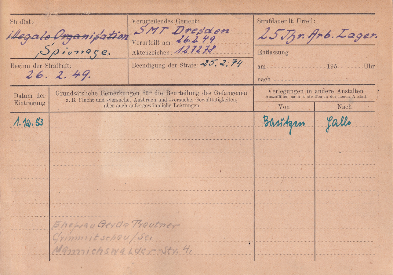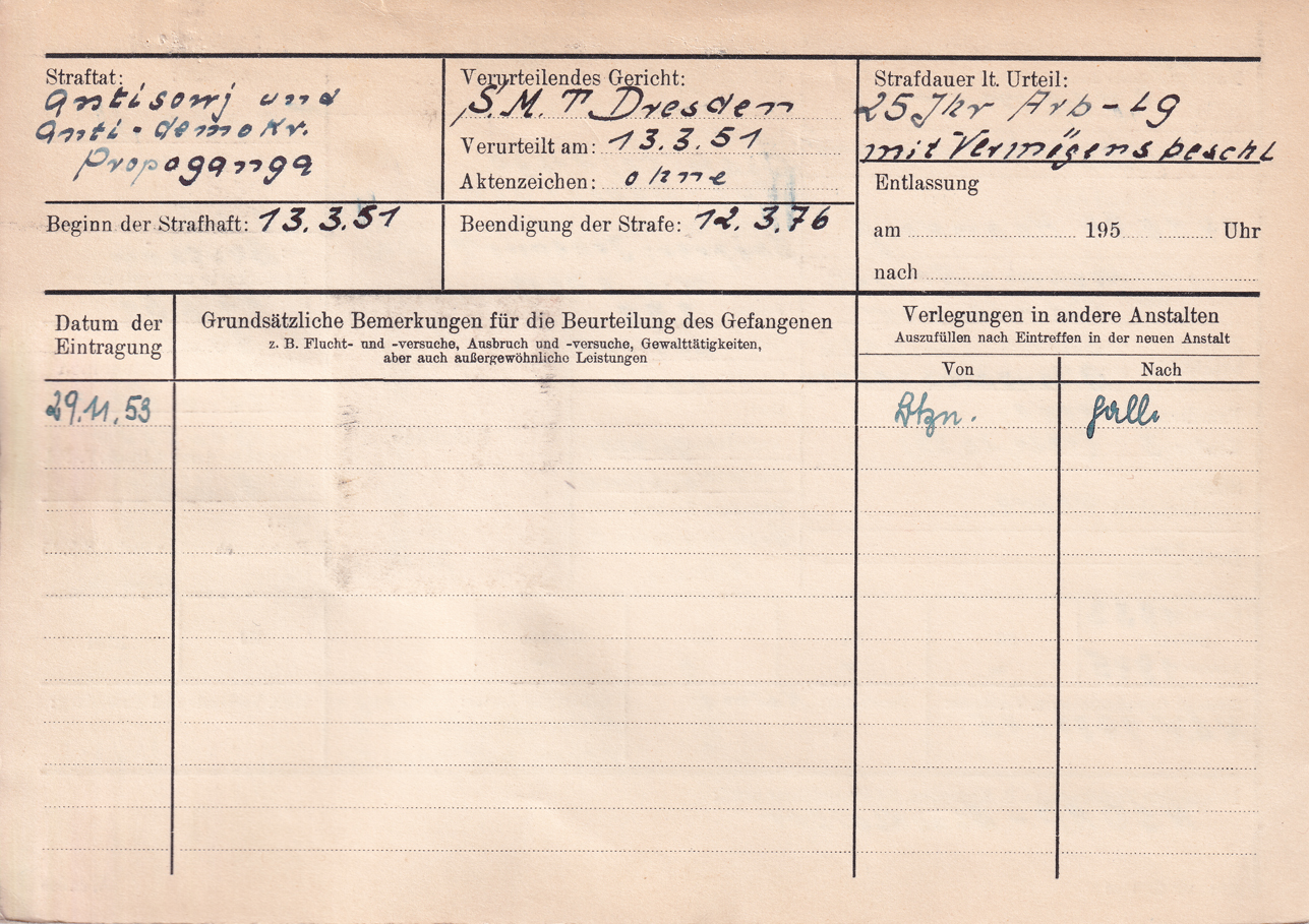 • Kurzbiografie:Wegen „Nichtanzeige eines konterrevolutionären Verbrechens“ verurteilt