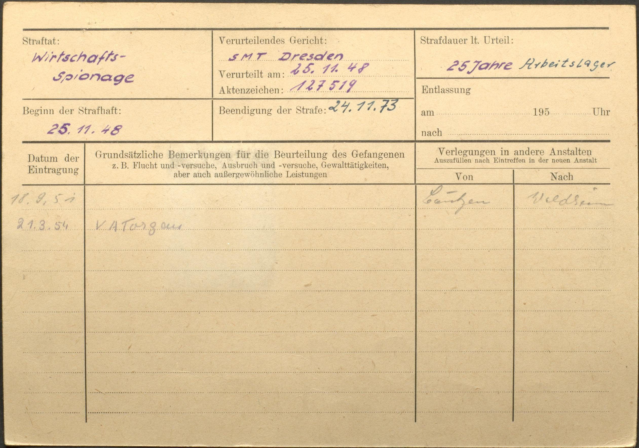 • Haftorte: Bautzen (Speziallager)