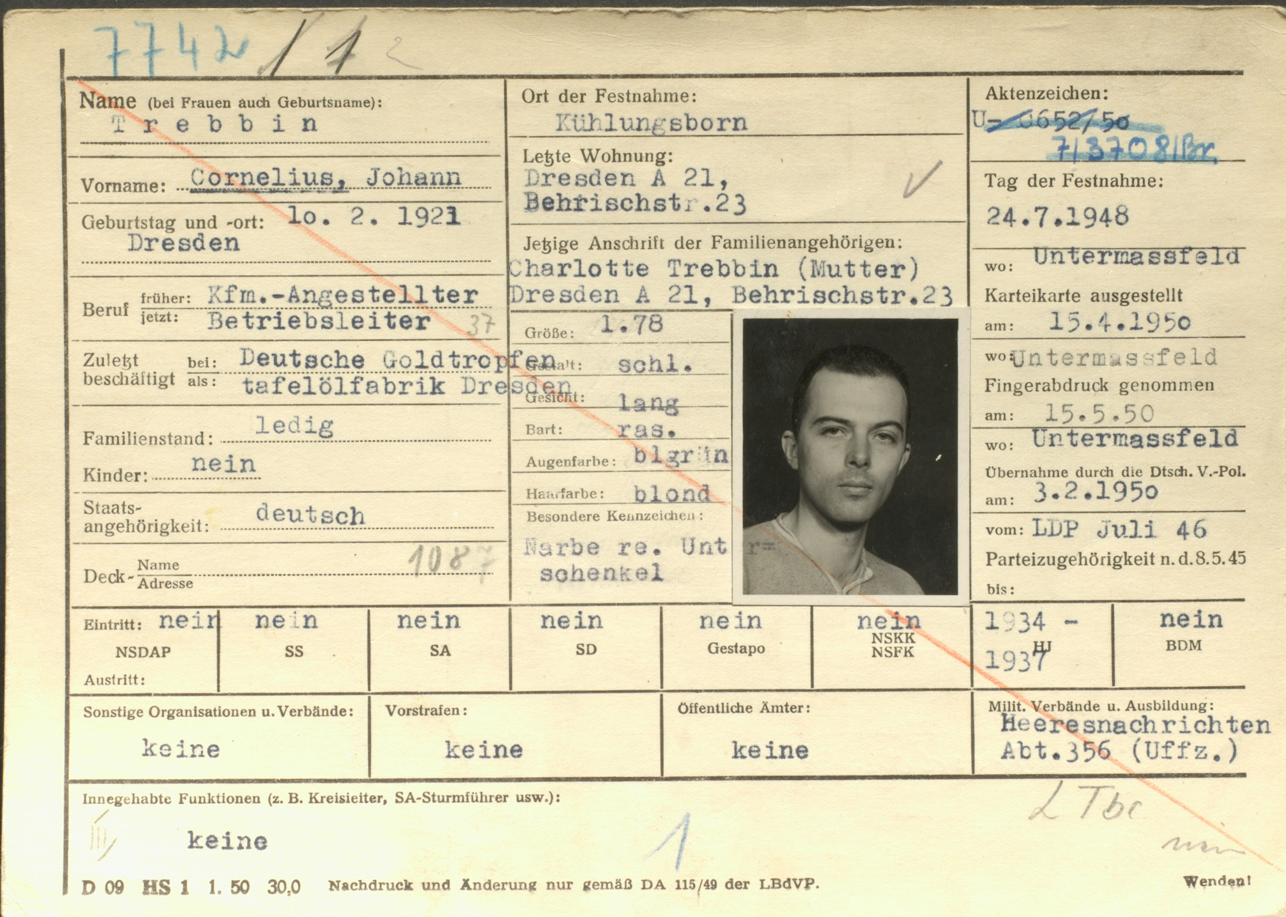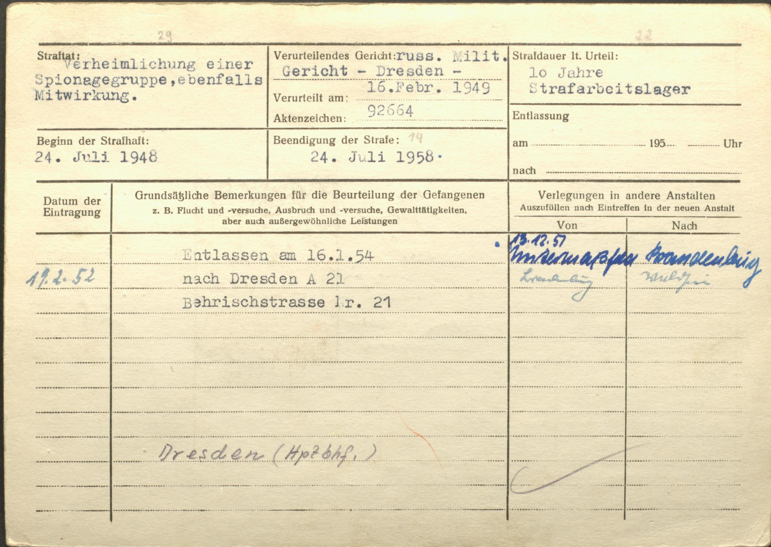 • Haftorte: Dresden (NKWD/MWD)