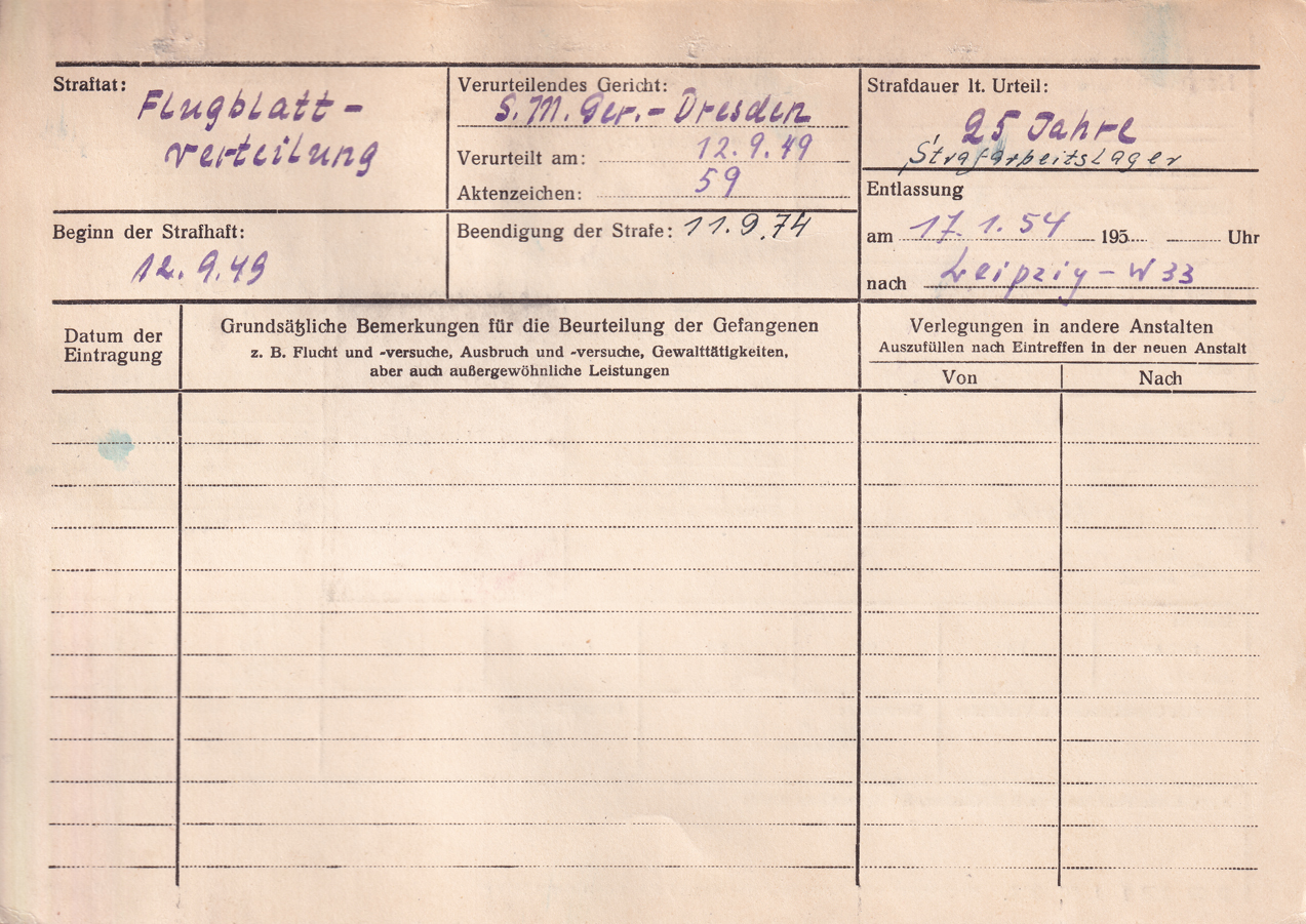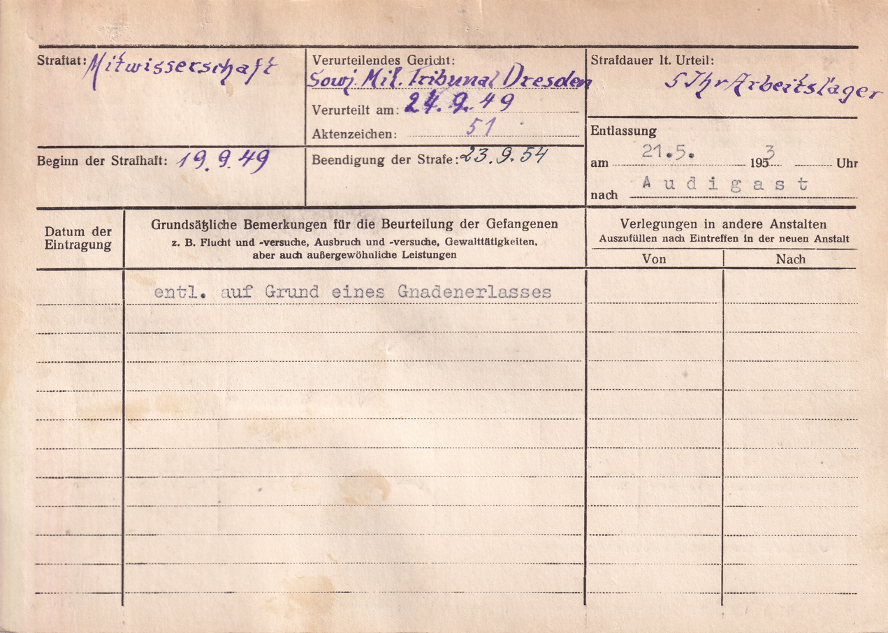 • Haftorte: Dresden (NKWD/MWD)